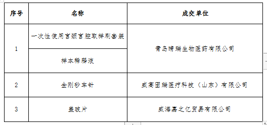 我院对一次性使用宫颈宫腔取样刷套装等项目进行院内采购,经评委评审确定成交供应商,现将成交供应商公示如下: